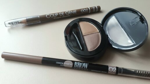 Сегодня хочу рассказать о продуктах из Магнит Косметик от Вивьен Сабо. Для статьи взяла 2 карандаша (один автоматический (за 250 рублей), второй - простой (за 230 рублей)), а также тени для бровей (за 210 рублей). Цены на продукты примерно одинаковые, поэтому если вы не знаете, какое из средств купить, постараюсь вам рассказать о каждом, чтобы вы сделали правильный выбор. В обзоре: 1 - Coup De Genie; 2 - тени для бровей "Brow Arcade"; 3 - Brow Arcade Automatic Eyebrow Pencil. Сразу хочу показать, как эти продукты выглядят на коже...