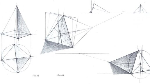 Продолжая рассматривать принципы построения конструкции объемных тел, необходимо ознакомиться с изображением геометрических форм гранных предметов (трехгранная и шестигранная призмы).