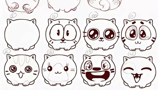 Номер 1. Самое простое что можно нарисовать, это авокадо и косточка. Вам понадобится всего нечего. Номер 2. Рисуем милого котика, поэтапно. Номер 3. Милый котик, но рисуется он проще предыдущего. Давайте...