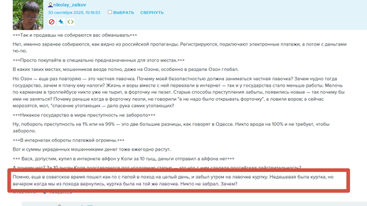 Ну там была очередная беседа о смысле жизни, суть не в этом. Суть вот в чем Там много всего странного и неинтересного, но главное я обвел. Процитирую: Помню, еще в советское время пошел как-то с папой в поход на целый день, и забыл утром на лавочке куртку. Недешевая была куртка, но вечером когда мы из похода вернулись, куртка была на той же лавочке. Никто не забрал. Зачем? Во как. Серьезно, вот на таких ведь мелочах всё и всплывает. И как внезапно, как изящно. Потому что можно погуглить про квартиры...
