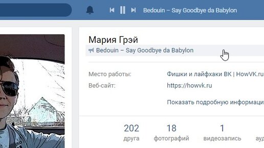 В этой статье расскажу, как поставить музыку в статус Вконтакте, если вы еще не знаете, как это сделать. Музыку, которую вы слушаете, можно транслировать не только на свою страничку, но и в статус принадлежащих вам групп. Музыку ставят в статус, когда хотят сообщить о своем настроении друзьям, просто поделиться классной песней. В общем, чтобы быть на одной волне. Играющая музыка в статусе выглядит так: Когда вы перестаете слушать песню, статус становится обычным: если была какая-то надпись, то она возращается на место, если ничего не было, статус становится пустым...