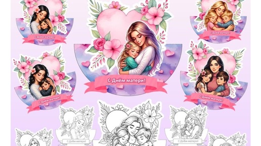 Поделка ко Дню матери "Подарок для мамы". Открытка (поделка) на "День Матери". Поделка ко Дню матери "Подарок для мамы". Предлагаемый комплект включает десять вариантов шаблонов. 1. Шаблоны поделки в чёрно-белом варианте. Черно-белый вариант можно распечатать, вырезать и наклеить на цветной картон или цветную бумагу. Также можно раскрасить шаблоны самостоятельно с помощью красок, цветных карандашей и фломастеров. 2. Шаблоны поделки в цветном варианте. Цветной вариант поделки легко распечатать, вырезать и собрать с помощью клея...