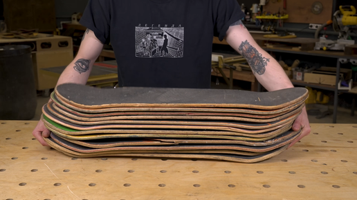 Здрасьте, с вами Даня Крастер и сегодня мы будем заниматься переработкой. Сделаем пару прикольных вещей из старых скейтбордов. 1. Почему именно скейтборды? Те, кто имел дело с этим девайсом, знают, как легко его сломать. Но это не единственная причина, почему мы решили их использовать. По сути доска для скейта – это очень качественная фанера. Она сделана из нескольких слоев клена, часть из которых красят, из-за чего на срезе получается уникальный узор. 2. Подготавливаем материалы Прежде всего, нужно избавить скейты от всего лишнего...