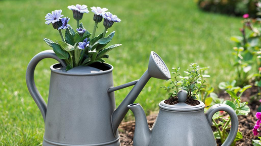 Садовая фигура из чайника и лейки: оживляем старые вещи