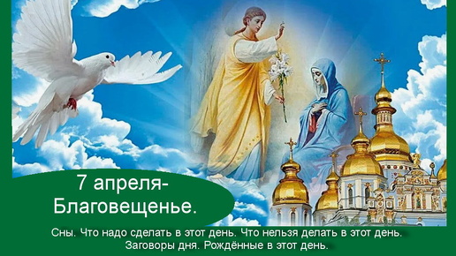 7 апреля- Благовещенье. Сны.Что надо сделать в этот день.Что нельзя делать в этот день. Заговоры дня. Рождённые в этот день.