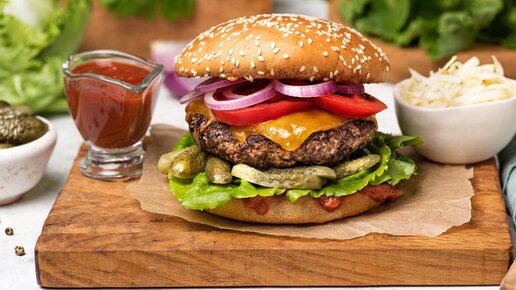 Ингредиенты для «Бургеры классические»: Булочка (домашняя по рецепту Покашеварим.) — 10 шт Говядина — 1 кг Жир (говяжий) — 150 г Сыр мягкий (или пластинками, или чеддер) — 20 шт Листья салата / Салат (айсберг или другой плотный и хрустящий салат; не надо брать нежные сорта салата, он просто размякнет в бургере и испортит его) — 1/2 шт Помидор — 2 шт Огурец (маринованный ) — 10 шт Лук красный — 2 шт Майонез — 2 ст. л. Горчица — 1 ст. л. Кетчуп — 2 ст. л. Соль — 1 ч. л. Перец черный — 1 ч...