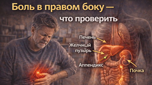 Боль в правом боку — один из самых частых симптомов после 40–50 лет.