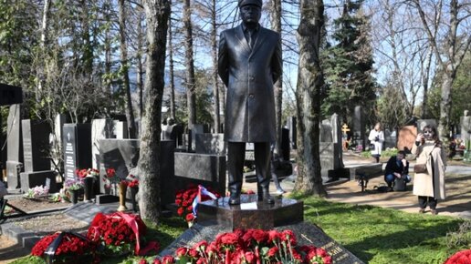 На Новодевичьем кладбище в годовщину смерти Владимира Жириновского открыли памятник политику. Как сообщает издание “Аргументы и Факты”, бронзовая фигура основателя ЛДПР выполнена в полный рост. Общая высота монумента вместе с постаментом составляет 2,75 метра. На памятник золотыми буквами нанесена одна из знаменитых цитат политика. Причем на постаменте выгравировано не только высказывание Жириновского, но и вопрос журналиста Владимира Познера: «Оказавшись перед Богом, что Вы ему скажете? – Я не хочу здесь лежать в райском саду...
