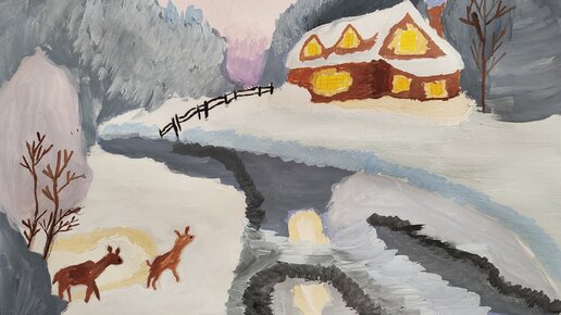 Натюрморт с круглым чайником выполнен на формате А2 гуашью. Остальные рисунки не такого грандиозного масштаба, но не менее сложные. Пейзаж написан по картине американского художника Томаса Кинкейда на формате А3, тоже гуашь...