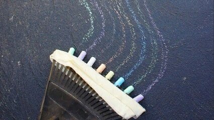Дети любят мел, и поэтому предлагаю уникальный способ, которым они могут рисовать, который смехотворно прост и доставляет детям удовольствие. Почему бы не сделать меловые грабли, которые они могут использовать для рисования и письма. Это также отличный способ для детей проявить творческий подход. Вам понадобится: Важно, чтобы палочки мела были примерно одинаковой длины. Используйте бумажный скотч , закрепите палочки мела. Зубы грабель и бумажный скотч сделают мел довольно безопасным. Пусть ваш ребенок просто перемещает грабли по земле, чтобы создать самые эффектные меловые метки...