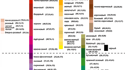 Названия цветов и их Lab значения