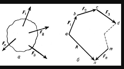 Плоская система сходящихся сил – это совокупность сил, действующих на твердое тело и расположенных в одной плоскости таким образом, что их линии действия пересекаются в одной точке. Эта точка называется центром системы сил. Силовой многоугольник – это замкнутый многоугольник, стороны которого по величине и направлению равны векторам сил, действующих на тело. Диагональ, замыкающая этот многоугольник, представляет собой вектор равнодействующей силы...