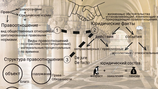Содержание опорного сигнала: 1. Понятие правоотношения. 2. Юридические факты. 3. Структура правоотношения. 1. Понятие правоотношения Право проявляет себя в трех основных формах: сознании людей (правосознании – психологическая школа права Л. Петражицкого), юридических нормах (правовое регулирование – позитивная школа права Г. Кельзена) и правовых отношениях (социологическая школа права О. Эрлиха), – складывающихся в результате реализации правовых норм. В этом смысле правоотношения выступают как правовая...