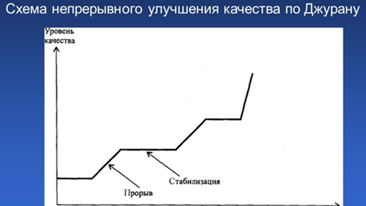 Необходимо осуществлять постоянное улучшение качества всех процессов, приводящее к улучшению качества выходного продукта, это один из основных элементов успеха стратегии качества. Первым о постоянном улучшении качества заговорил Джуран...