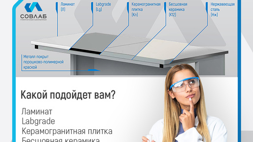 Материалы рабочих поверхностей лабораторной мебели серии Модерн