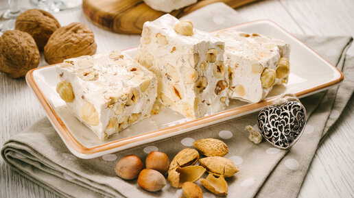 Многие сладкоежки любят десерт под названием нуга, рецепт в домашних условиях готовится из компонентов, которые всегда под рукой. Лакомство сочетается с чаем, кофе, молоком. Его можно подать самостоятельно или использовать в качестве начинки для вафель, бисквита. Как правило, нуга нарезается брусочками. Но для праздников можно использовать различные кулинарные формы. К примеру, сердечки, звездочки. Лакомство получается довольно структурным. Ему легко придать форму. Для разделения десерта на порционные кусочки лучше использовать нож, смоченный в горячей воде...
