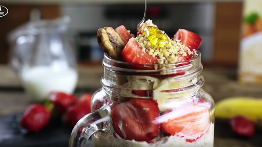 Ягоды, фрукты, орехи Способ приготовления: 1. В стеклянную банку 0,4 или 0,5 мл добавляем овсянку, молоко, йогурт, сахар (либо другой подсластитель) и фрукты или ягоды...