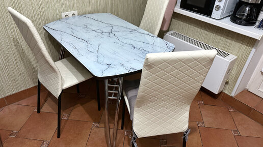 Давно меня уже просили сделать обзор нашей кухонной мебели и техники, ну теперь, когда мы уже достаточно ей по пользовались, я могу это сделать. Ссылки на мебель я оставлять не буду, но если ввести в поиске браузера так, как я написала ниже, то вы легко найдете всю мебель. Цены тоже не буду писать, они постоянно меняются. Я буду писать честно, как есть. Сам стол классный, его можно разложить и он станет длиннее. Стулья за свою цену тоже хорошие. Но под стол можно задвинуть только два стула. Третий, который находится с торца, не проходит по ширине...