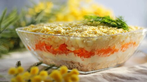 Салат «Мимоза» относится к нестареющей советской кулинарной классике. Простой, доступный, вкусный и привлекательный внешне, он завоевал сердца людей сразу как появился, в 70-х годах прошлого века, и занял почетное место рядом с селедкой под шубой и оливье. Правда, в той первой «Мимозе» не было картофеля, зато были слои тертого сыра и сливочного масла. А вот отличительная внешняя особенность не претерпела изменений — тертый яичный желток, выложенный сверху. Именно он, так похожий на маленькие пушистые цветочки мимозы, дал авторам блюда идею названия...