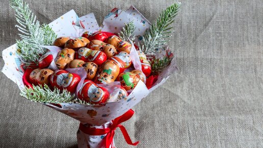 Идея новогоднего подарка своими руками: сладкий букет