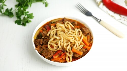 Лагман – вкусное, сытное и многим известное блюдо, очень яркое и ароматное. Существует огромное количество вариаций лагмана. Его готовят десятки разных народов и поколений. Главное правило настоящего классического лагмана – это тянутая или резаная лапша и особая подлива (кайла). Овощи, приготовленные с соблюдением всех правил лагмана, наполняют это блюдо неповторимым вкусом. Как приготовить лагман по классическому рецепту Ингредиенты: Говядина – 600 г Морковь – 120 г Лук репчатый – 120 г Перец болгарский – 1 шт...