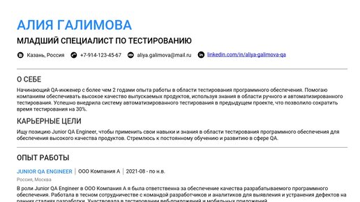 Пример резюме junior QA 2025 - Как составить