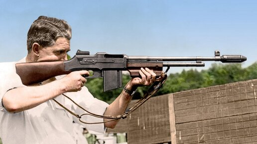 История этой автоматической винтовки, давшей во многом начало классу ручных пулеметов адекватной компоновки (хотя конструкции такого типа существовали и раньше, но были либо откровенно переутяжелены, либо нетехнологичны или чрезмерно сложны, либо представляли собой просто сооружение "из спичек и желудей"), уникальна хотя бы уже тем, что в боевом применении ее успел испытать сын конструктора: на фото выше - не кто иной, как Вэл Аллен Браунинг, сын создавшего ее Джона Мозеса Браунинга, призванный...