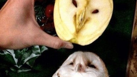 Яблоки очень полезны для здоровья. А совы – для вашего дома. Ведь они отлично борются с грызунами, в частности, с мышами. Посмотрите на это фото. Видите нечто общее между этим разрезанным пополам яблоком и этой симпатичной белой совой? Если вы думаете, что общее у этих фото то, что совы едят яблоки, то вы не правы...