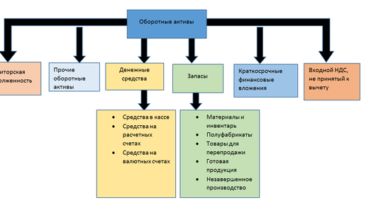 Что относится к оборотным активам предприятия — определение Активы предприятия — важный показатель, который отображает уровень развития компании. Выделяют 2 группы активов: оборотные и внеоборотные. Что является источниками формирования оборотных активов организации В качестве источников формирования ОА могут выступать: При этом расходование собственных ресурсов фирмы на увеличение ОА обладает минимальным уровнем риска по сравнению с привлечением заемных средств. Оборотные активы включают в себя следующие составляющие Что относится к оборотным активам предприятия, рассмотрим на схеме...