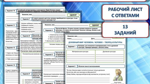 Рабочий лист "Духовный мир человека. Человек - творец культуры"