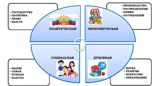 Разберемся поподробнее. Нам известно, что существует 4 сферы в жизни общества, и все они тесно связаны между собой...