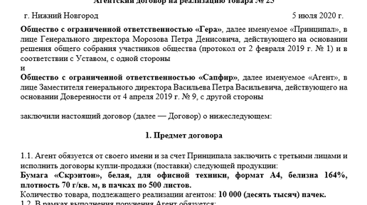 Понятие и пример агентского договора Для того чтобы грамотно составить договор агентирования, необходимо разобраться с его ключевыми положениями. Под агентированием понимают соглашение, в рамках которого исполнитель (агент) за вознаграждение от принципала исполняет от своего или его имени, но всегда за его счет юридические и иные действия. Чтобы было понятнее, какие действия агента подпадают под регулирование главы 52 Гражданского кодекса, приведем примеры агентского договора. Таковыми будут считаться...