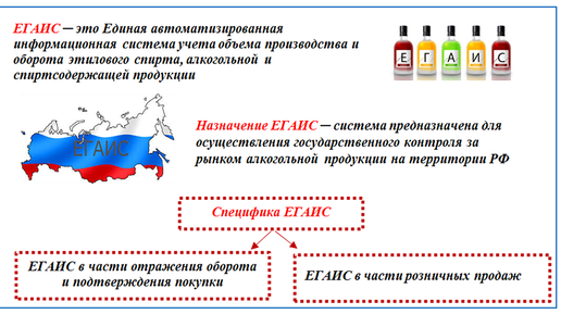 Что такое ЕГАИС: определение и нормативные документы Коротко и наглядно знакомимся с ЕГАИС: В настоящее время правила функционирования ЕГАИС утверждены постановлением Правительства РФ от 31.12.2020 № 2466. Благодаря ЕГАИС контролирующие органы могут проследить весь путь каждой единицы алкогольной продукции от момента ее изготовления (или ввоза на территорию России) до попадания в руки конечного потребителя. Как это работает? Если к вам попала единица контрафактного алкоголя, то данные о ней будут отсутствовать в ЕГАИС и продажа ее станет невозможной (заблокируется на кассе)...