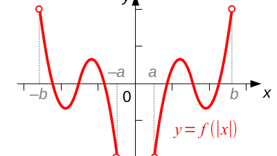 Функция y = f(x) определена на интервале (a; b). Найдите область определения функции y = f(|x|) и опишите, как будет выглядеть её график, если: а) 0 < a < b ; б) a < 0 < b . Обозначим для удобства f(|x|) = Y(x) а) 0 < a < b Область определения f(x) – интервал (a; b) – располагается в положительной части числовой оси. По условию задачи выражение f(x) имеет смысл, если аргумент функции принимает положительные значения в интервале a < x < b Поскольку a > 0 и b > 0, то вид неравенства не изменится,...