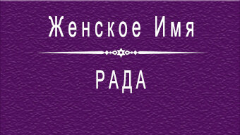 Женское имя Рада имеет древнеславянское происхождение. Имеет трактовку «веселая». По иной версии может иметь мусульманское происхождение. В этом случае имеет значение «стройная и изящная» или «красивая девушка». Пользуется спросом, как в русской, так и в восточной культуре. Значение имени наделяет носительниц веселым нравом и положительным характером...