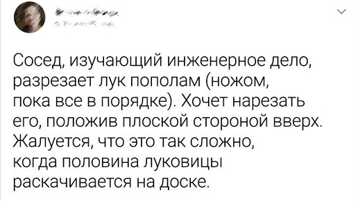 Никто не застрахован от провалов на кухне — даже люди, которые могут назвать себя гуру кулинарии. Однако без таких маленьких проигрышей наша повседневная жизнь была бы довольно однообразной и даже скучной. Ведь первой реакцией на эти неудачи может быть расстройство, но зато по прошествии времени люди, потерпевшие кулинарные фиаско, вспоминают о них с улыбкой и делятся ими со своими друзьями и пользователями сети. Пару лет назад ко мне на ужин пришел парень. Он вызвался помочь приготовить. Я сказала ему разделить цветную капусту пополам...