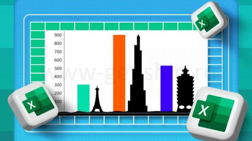 Excel предлагает множество различных типов диаграмм, включая столбчатые и линейные графики, для представления ваших данных. Однако вы не обязаны использовать предустановленные макеты столбцов и линейных графиков. Вместо этого вы можете заменить их тематическими изображениями или значками, чтобы сделать диаграмму более привлекательной. Эта таблица Excel показывает высоты трех известных зданий. Чтобы создать столбчатую диаграмму, я выберу данные, нажму «Вставить» и выберу опцию «2D Групповая столбчатая диаграмма»...