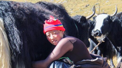 Тибетка доит яка в летний день. Из ячьего молока тибетцы делают йогурт, сыр и масло. Кстати, вы знали, что