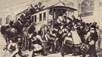 Что такое «омнибус»? Первое, что замечается, это схожесть со словом «обнимусь», и она не случайна. Омнибус - это вид общественного транспорта, прадед автобуса, появившийся в Петербурге в середине 19 века. Рассчитан он был на 15-20 человек (хотя бывало и больше), а на дорогах был подвержен сильной тряске, отчего внутри люди были, так сказать, в очень тесных отношениях. И тогда бойкие петербуржцы стали использовать по отношению к этому транспорту слово «обнимусь», намекая на малое место внутри транспорта...