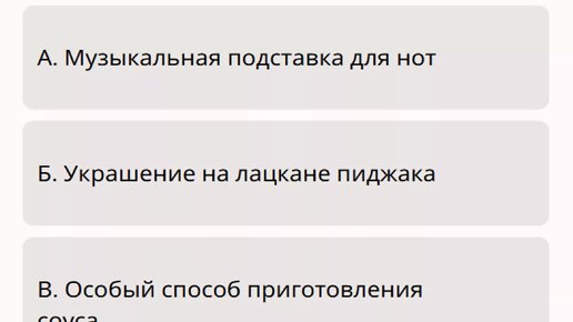 Иногда одно слово способно поставить в тупик даже начитанного человека. Возьмём, например, слово «пюпитр». Оно звучит необычно, почти как десерт, но имеет вполне конкретное значение. Проверьте, сможете ли вы с первой попытки угадать, что это такое. Вопрос: Что означает слово «пюпитр»? А. Музыкальная подставка для нот Б. Украшение на лацкане пиджака В. Особый способ приготовления соуса Правильный ответ: А. Музыкальная подставка для нот Пюпитр — это специальная складная подставка, на которую музыканты ставят ноты...