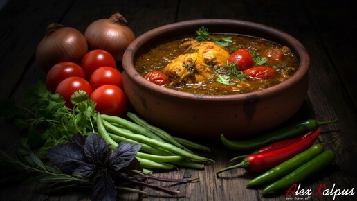 запоминается грузинский буглама из курицы, или «ქათმის ბუღლამა». Это блюдо, название которого происходит от грузинского слова «бугли» (что