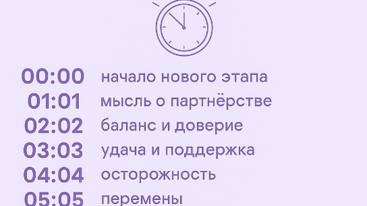 ПРИВЕТСТВУЮ НА КАНАЛЕ: "ТЫ САМ СЕБЕ МАГ" Время от времени, взглянув на часы, мы видим симпатичное совпадение чисел, например: 12:12, 15:51, 23:23 и так далее. И это имеет особое магическое значение. Судьба, как известно, посылает человеку знаки самыми разными способами. И с помощью цифр конечно, тоже. Давайте познакомимся что означают парные числа на часах и о чем они говорят. Посмотрим на часы 00:00 - загадывайте желание, оно непременно исполнится. 01:01 - вас ожидает приятная встреча со знакомым мужчиной...