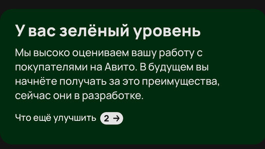 Давайте разбираться вместе. Пока данная функция на Авито еще в разработке. И этот заветный значок отличия получили совсем немногие продавцы. Но совсем скоро Авито начнет выдавать этот знак отличия самым проверенным профилям. А пока, разберемся, что же нужно, чтобы получить в дальнейшем этот отличительный заветный знак. Для начала, отмечу, что статистика собирается в течении 30 дней. Сайт анализирует ваши действия за месяц и так сказать делает выводы о Вас. У меня уже зеленый уровень. Что делаю...