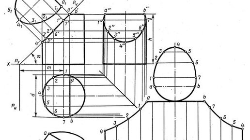 Комплексный чертеж усеченного цилиндра, аксонометрия, развертка