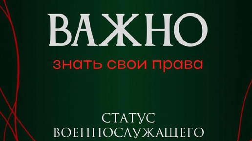 🇷🇺 Федеральный закон «О статусе военнослужащих»: 5 статей, которые вы обязаны знать Каждый военнослужащий должен быть юридически грамотным, профессия обязывает. Ваши права, льготы и социальные гарантии прописаны в главном документе — ФЗ «О статусе военнослужащих». Знание этих норм защитит вас и вашу семью. Приводим 5 ключевых статей, которые являются основой правового статуса военнослужащего. 1️⃣Статья 2. Граждане, имеющие статус военнослужащих. ⚪️Эта статья — ваш «паспорт» в мире военного права...