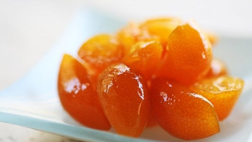 Супер легкий рецепт для цукатов из кумквата с приятным кисло-сладким вкусом и легкой цитрусовой свежестью! Можно использовать как сладкую приправу к мясу, оригинальную и вкусную закуску или изысканную съедобную декорацию ваших кулинарных блюд. Кумкват – это миниатюрное цитрусовое растение с крошечными продолговатыми оранжевыми плодами, которые употребляют в пищу целиком, включая кожуру. Эти маленькие плоды способны обеспечить человека энергией и поднять ему настроение. Кумкват богат полезными веществами – это витамины А, С, В, калий, кальций, фосфор, железо, натрий...