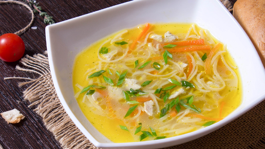 Что приготовить на ужин из курицы? Этот вопрос ежедневно задают себе миллионы женщин, желающих порадовать своих близких вкусным и питательным, но в то же время легким и полезным блюдом. Ведь не рекомендуется готовить на ужин тяжелые кулинарные творения, так как в конце дня организму человека требуется минимальное количество калорий. Именно этого принципа мы и будем придерживаться. Нежирный, но питательный суп — идеальный ужин. Для приготовления домашней куриной лапши вам понадобится: Приготовить ужин из курицы очень просто и быстро...