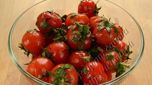 Быстрая закуска из помидоров черри. Помидоры готовы к употреблению примерно через сутки.