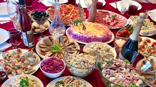 К праздничному столу стоит подготовить разнообразные блюда, чтобы угодить всем гостям и создать атмосферу уюта и торжества. Начните с закусок: на холодный стол можно разместить нарезку из разных сыров и колбас, шпинатный тарт с фетой и соленые огурцы. Также хорошо подойдут канапе с семгой и кремом из авокадо. Основное блюдо — важная составляющая. Опробуйте запеченную утку с яблоками или индейку, фаршированную грибами и орехами, которые станут настоящей звездой вашего стола...