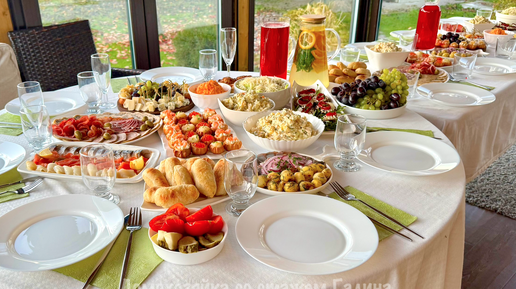 Я к вам с обзором праздничного стола, который мы готовили на День рождения моей мамочки. Накануне она пришла ко мне, чтобы вместе составить меню. И первое, что она сказала: «Хочу, чтобы на столе были профитроли и всякая рыбка». Причём рыбу и морепродукты она выбрала и купила сама, строго по своему вкусу. Мы сели думать, что приготовить, и в итоге всё, о чём договорились, вы сейчас видите на столе. Никаких кальмаров, фаршированных устрицами, и никаких омаров, только то, что любим мы, то, что готовится без лишней суеты, но при этом вкусно...